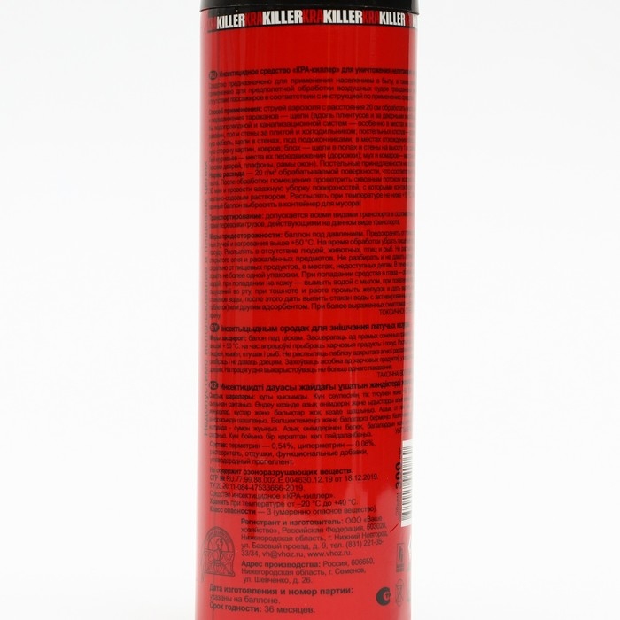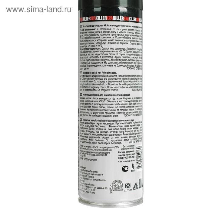 - Длительное действие. ""KRA Killer"" Дихлофос обеспечивает длительную защиту от ползающих насекомых, предотвращая их повторное появление в течение продолжительного времени.