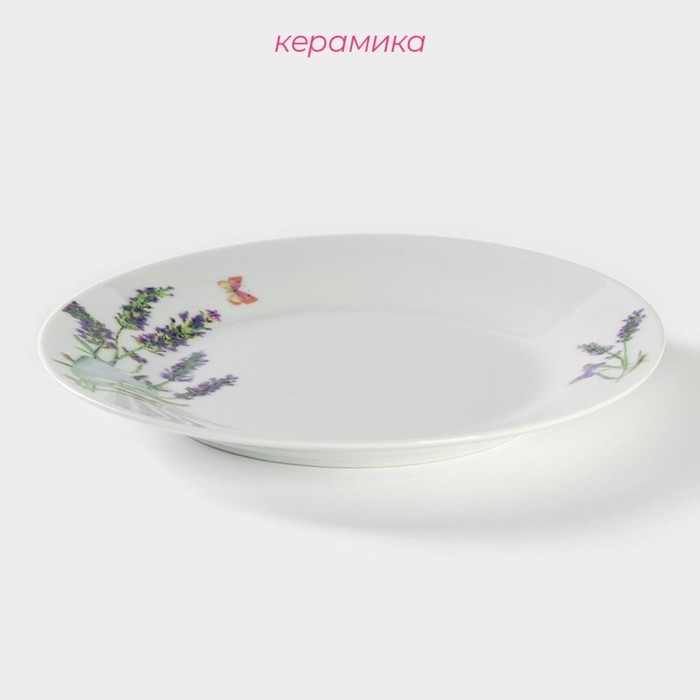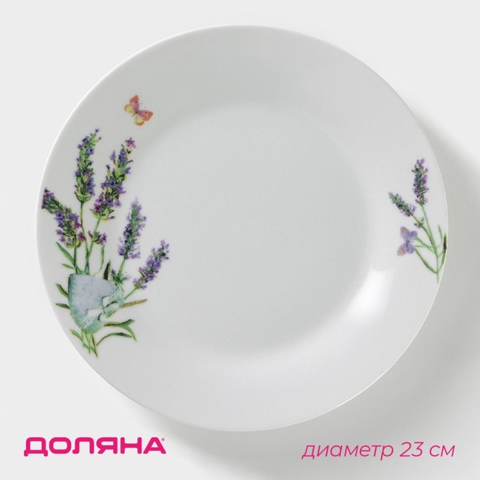 Тарелка керамическая обеденная Доляна «Лаванда», d=23 см, цвет белый
