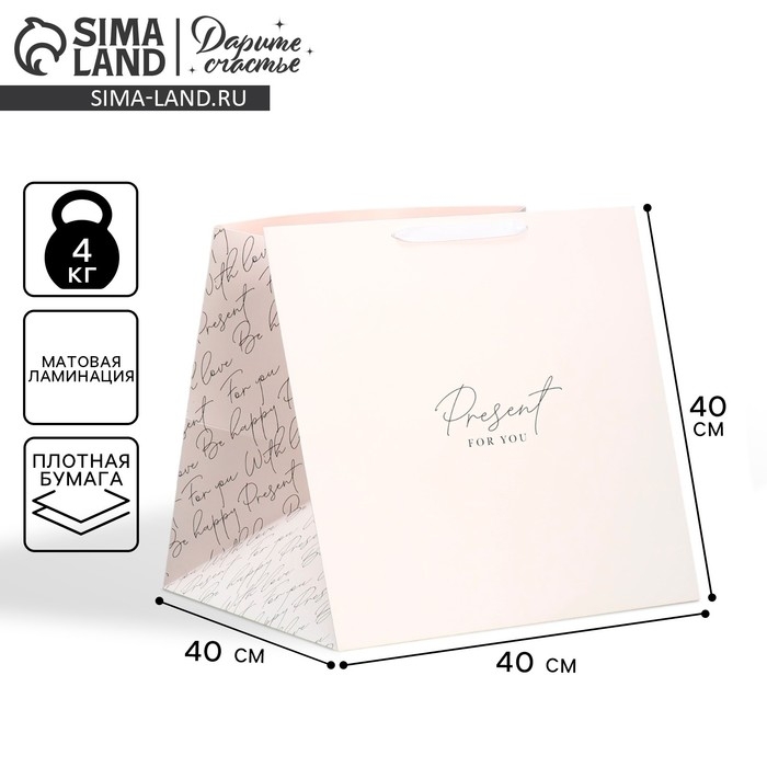 Пакет подарочный квадратный, упаковка, Present with love, 40 х 40 х 40 см
