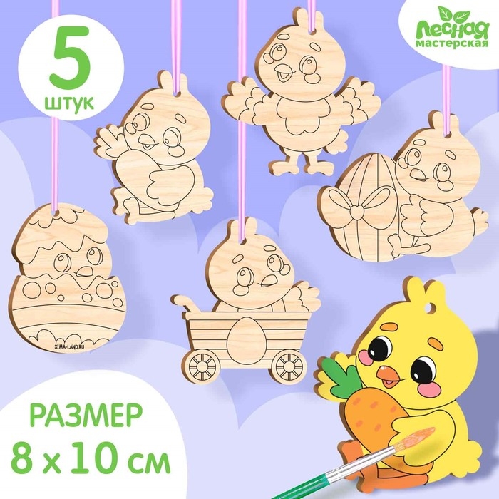 Заготовки для творчества. Роспись по дереву «Пасха: цыплята», 5 шт