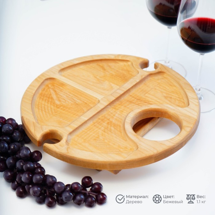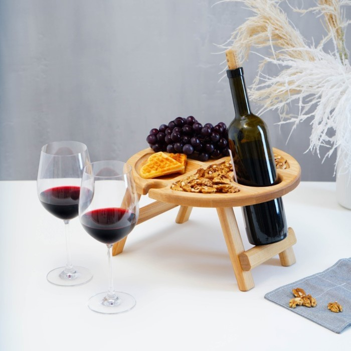 Столик - поднос для вина Adelica, с менажницей и складными ножками, на 2 персоны, d=32×1,8 см, берёза