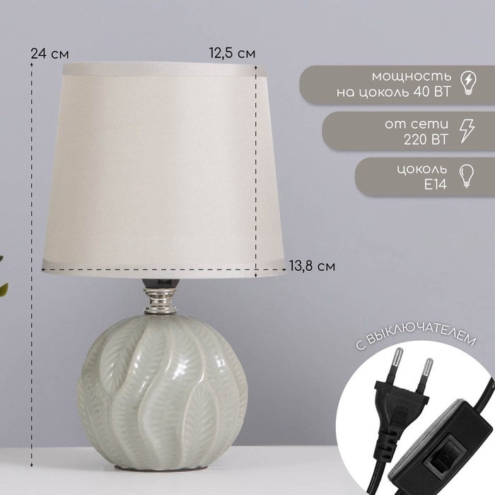 Настольная лампа "Руфи" Е14 40Вт серый 12,5х12,5х29 см RISALUX