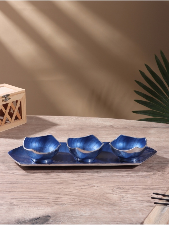 Менажница "Аква" (набор 3 шт) 9х9х5 см, на подносе, алюминий