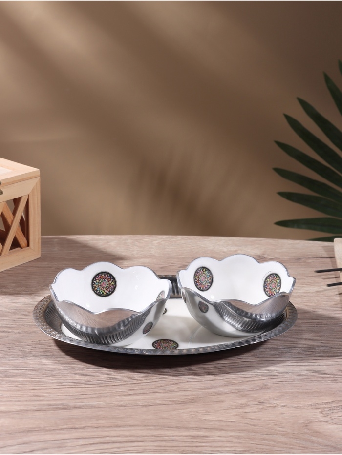Менажница "Винтаж" (набор 2 шт) 10х10х5,5 см, на подносе, алюминий