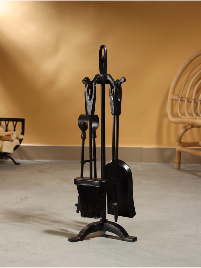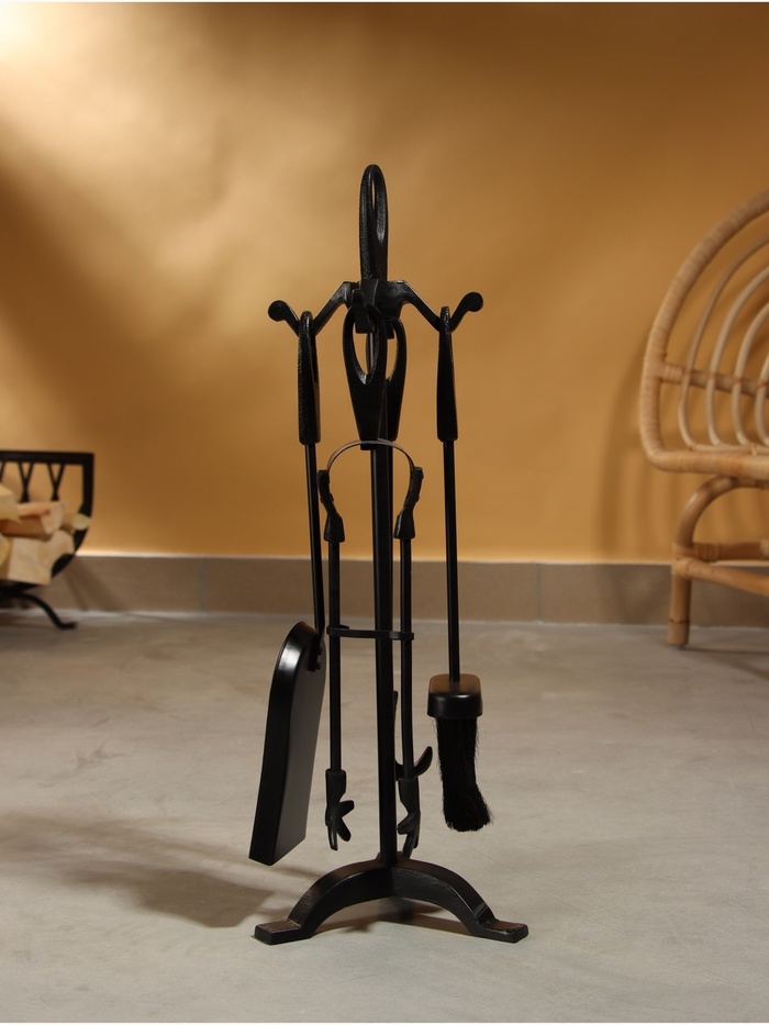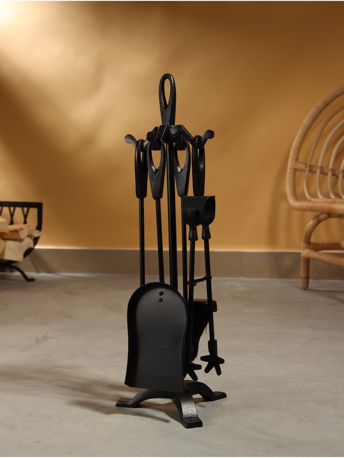 Каминный набор "Огонь" сталь, 4 предмета, 17х17х55 см