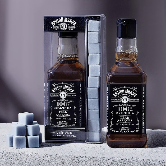 Новогодний подарочный набор косметики «Крутой мужик», гель для душа во флаконе виски 250 мл и мыло для рук 90 г, Новый Год