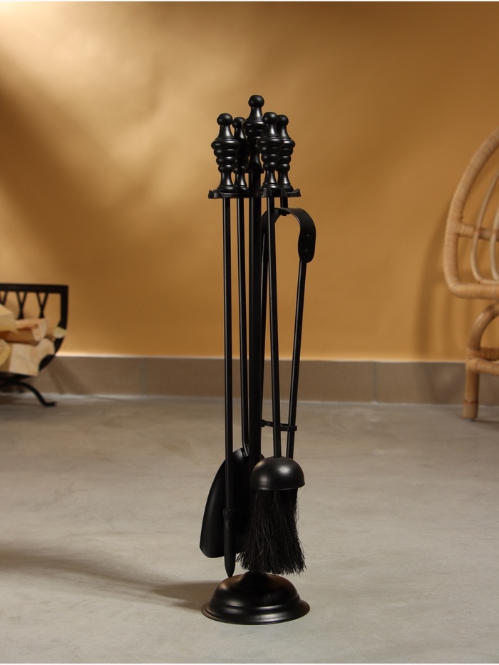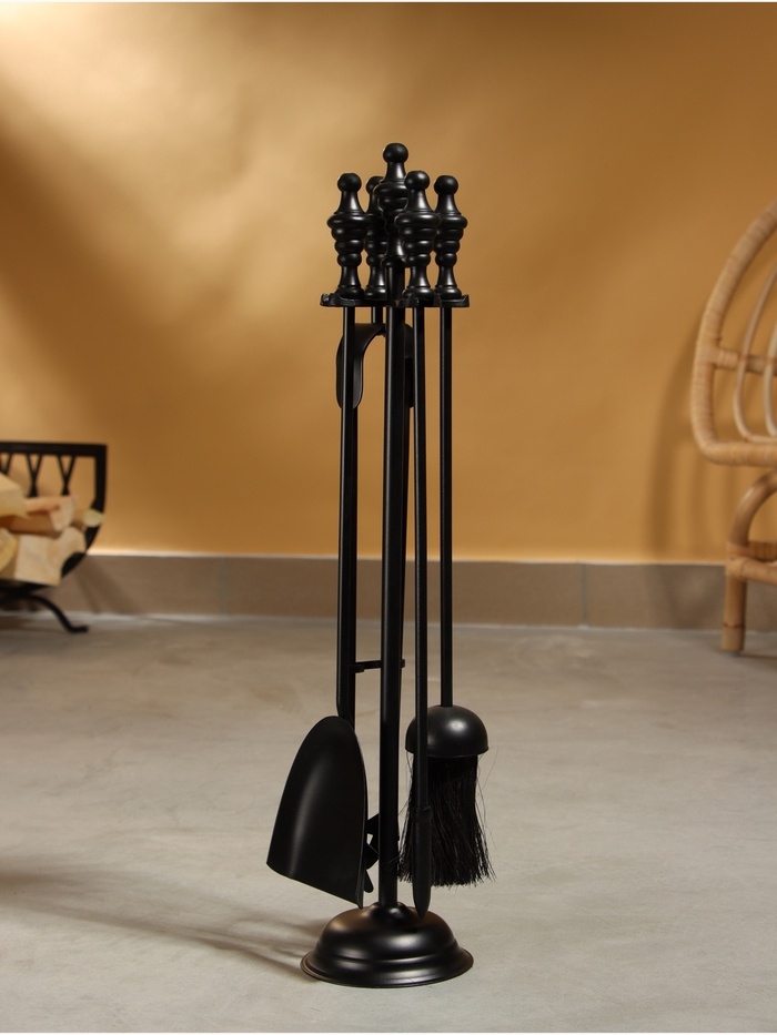 Каминный набор "Тепло" сталь, 4 предмета, 12х12х54 см
