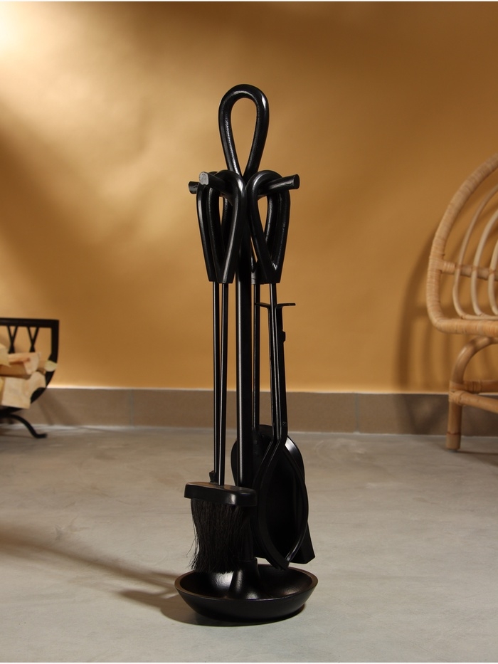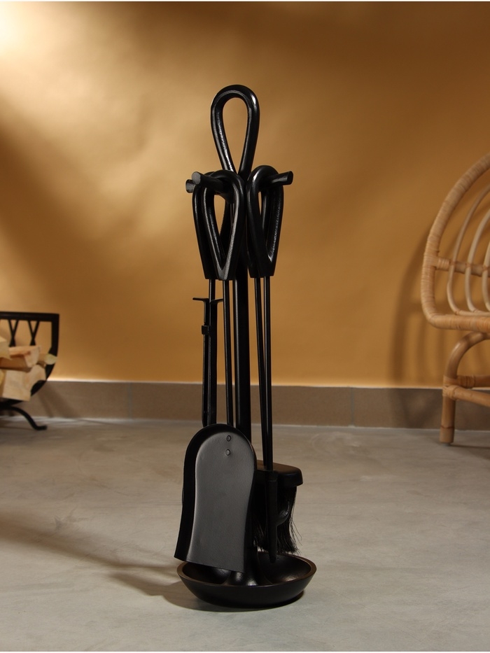 Каминный набор "Кочегар" сталь, 4 предмета, 17х17х63 см