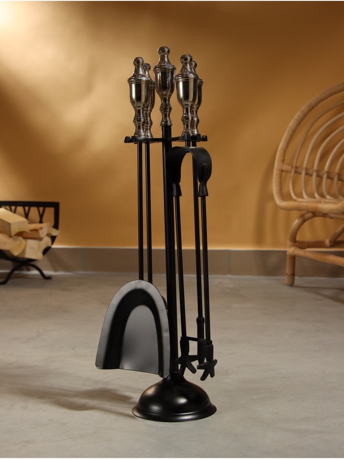 Каминный набор "Вьюга" сталь, 4 предмета, 13х13х61 см