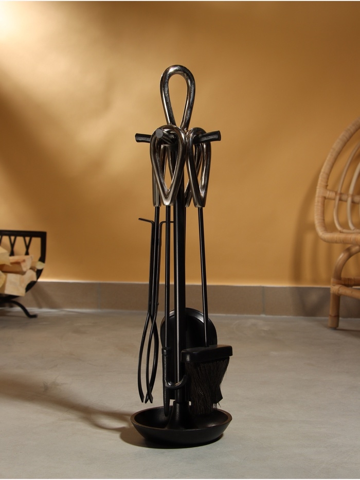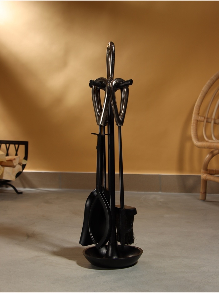 Каминный набор "Уголёк" сталь, 4 предмета, 17х17х63 см