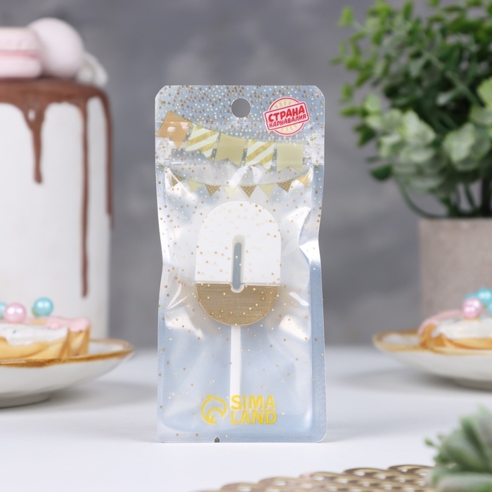 Свеча в торт "Манхеттен", цифра "0", белая с золотом, 5 см