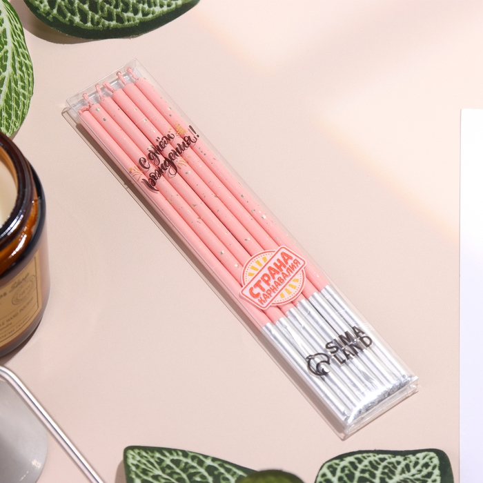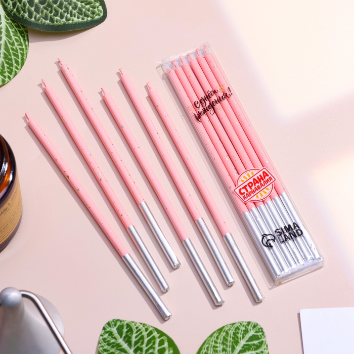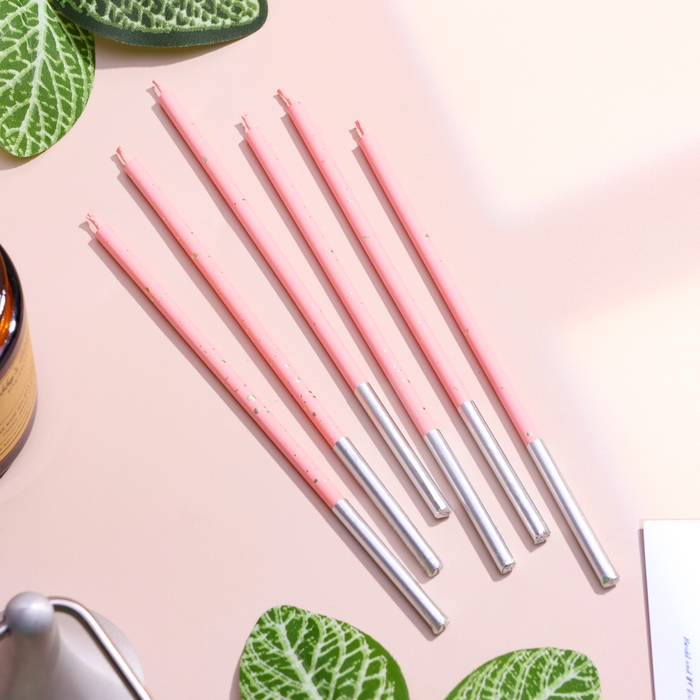Набор свечей в торт, 6 штук "Исполнение желаний", 15 см, розовый