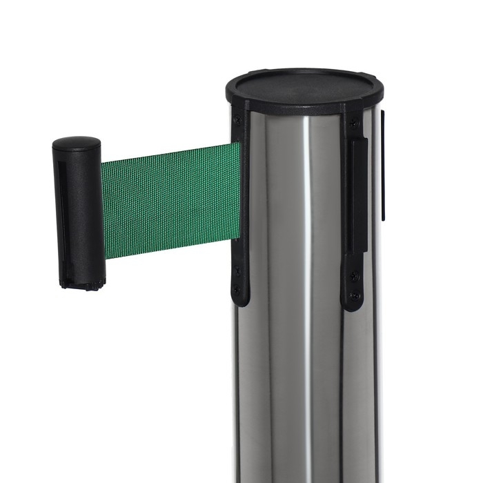 Стойка ограждения серая, с вытяжной лентой-280см зелёная, высота-90см, d- 6см, напольный d-32см