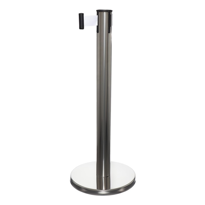 Стойка ограждения серебряная, с вытяжной лентой-280 см белая, высота-90см, d- 6см, напольный d-32см
