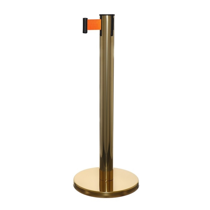 Стойка ограждения золотая, с вытяжной лентой-180см, оранжевая, высота-90см,d- 6см,напольный d-32см