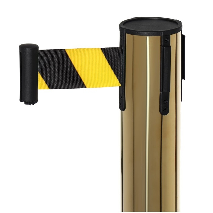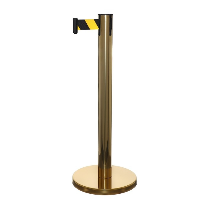 Стойка ограждения золотая, с вытяжной лентой-180 см желтая, черный, высота-90см, d- 6см, напольный d-32см