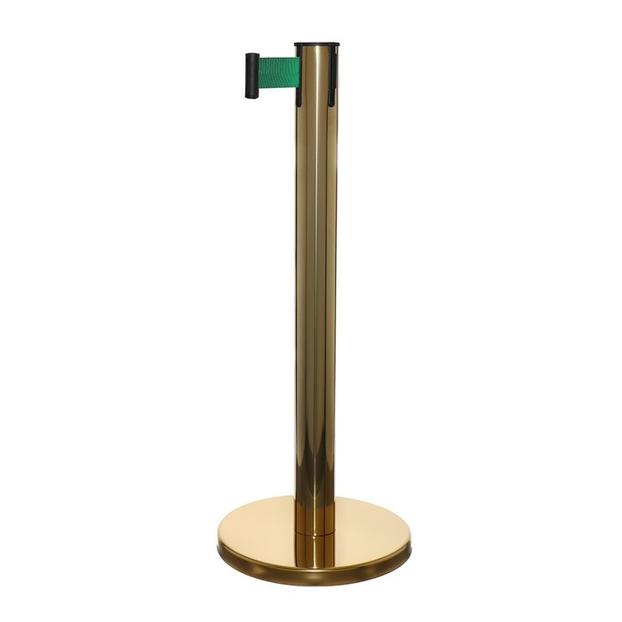 Стойка ограждения золотая, с вытяжной лентой-280 см зеленая, высота-90см,d- 6см,напольный d-32см