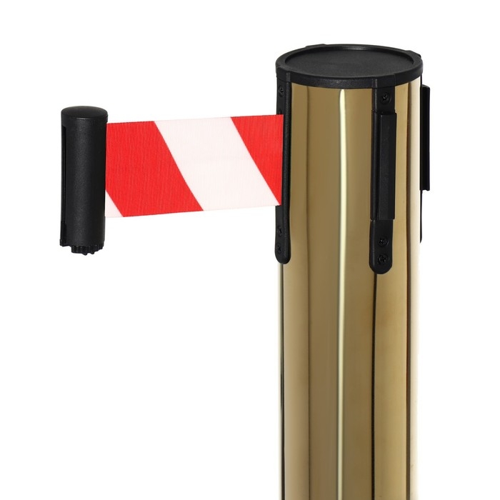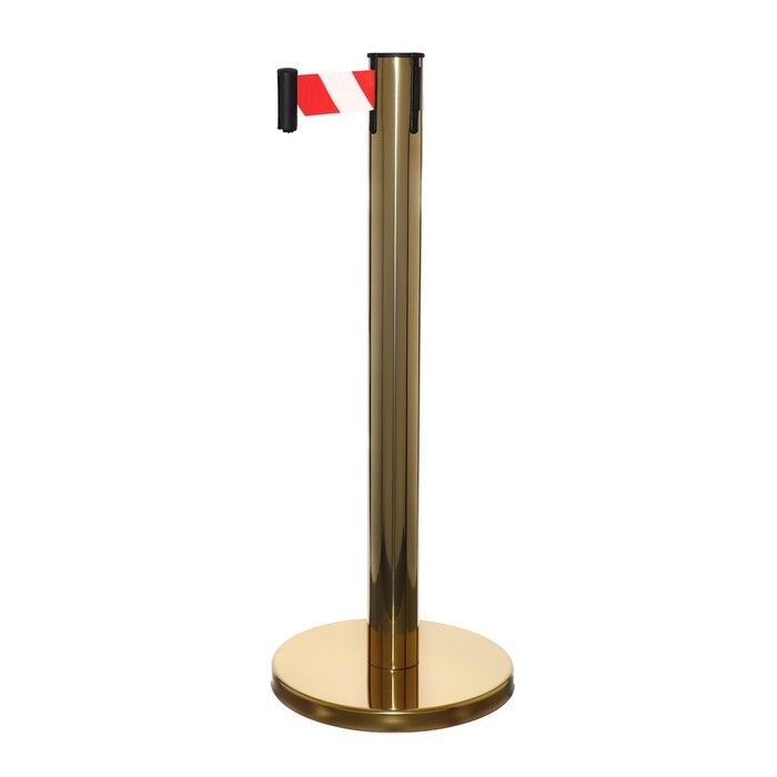 Стойка ограждения золотая, с вытяжной лентой - 470 см, красная - белая, высота - 90 см, d- 6см, напольный d-32см