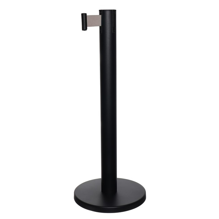 Стойка ограждения черная, с вытяжной лентой-180см серая, высота-90см, d- 6см, напольный d-32см
