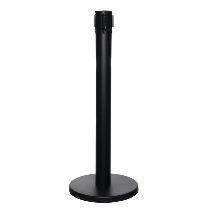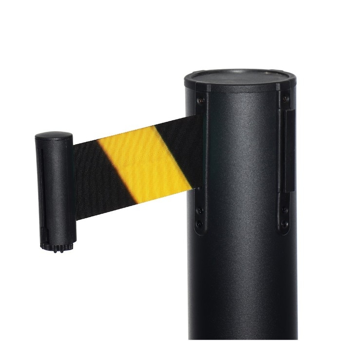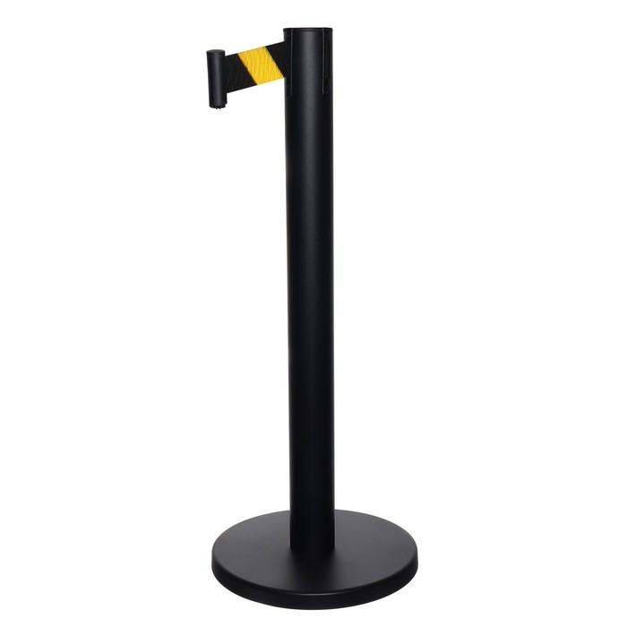 Стойка ограждения черная, с вытяжной лентой-180см желтая,черная, высота-90см, d- 6см, напольный d-32см