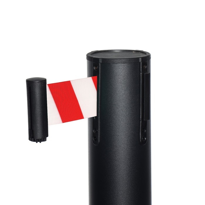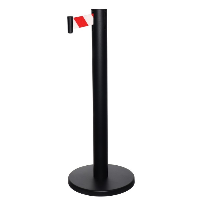 Стойка ограждения черная, с вытяжной лентой-280см, красная, белая, высота-90см, d- 6см, напольный d-32см