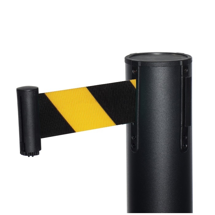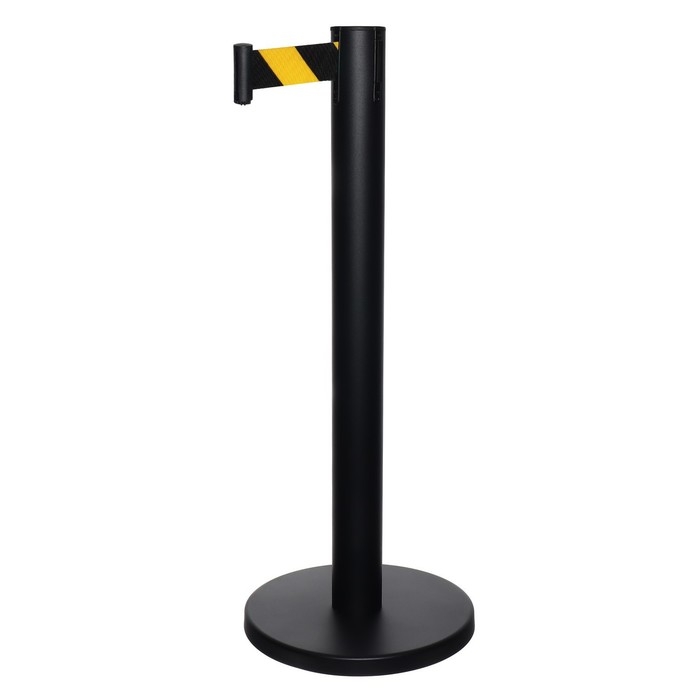 Стойка ограждения черная, с вытяжной лентой-470 см желтая - черная, высота-90см,d- 6см,напольный d-32см