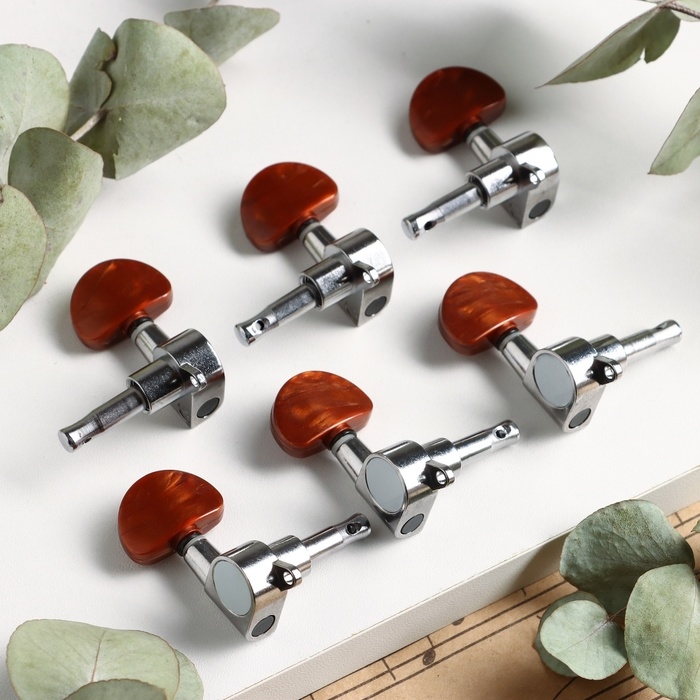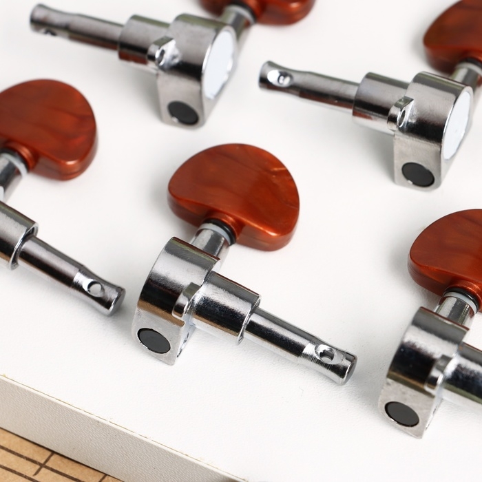 Комплект одиночной колковой механики Music Life, серебристый с коричневым, 3+3