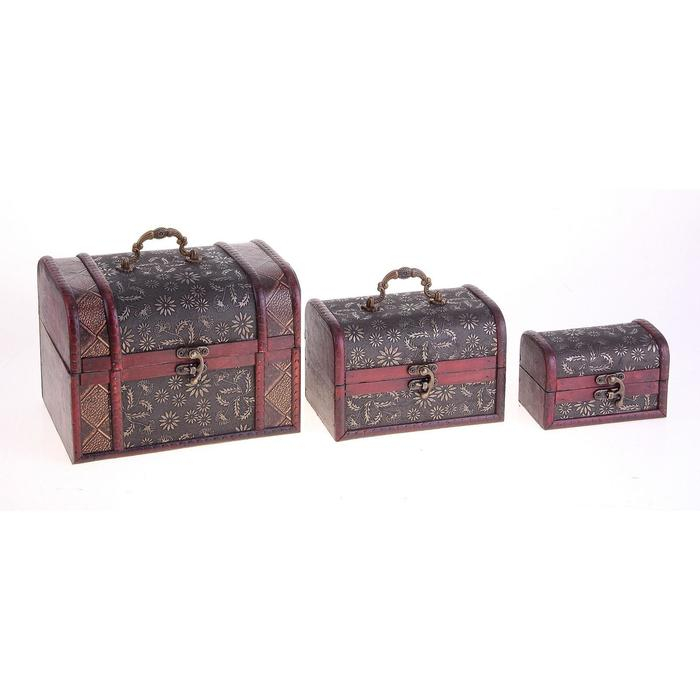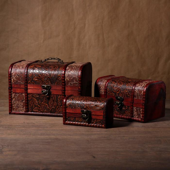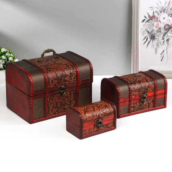 Шкатулка сундук дерево набор 3 шт узор "Лютики" МИКС 22х15х15 см