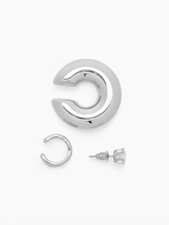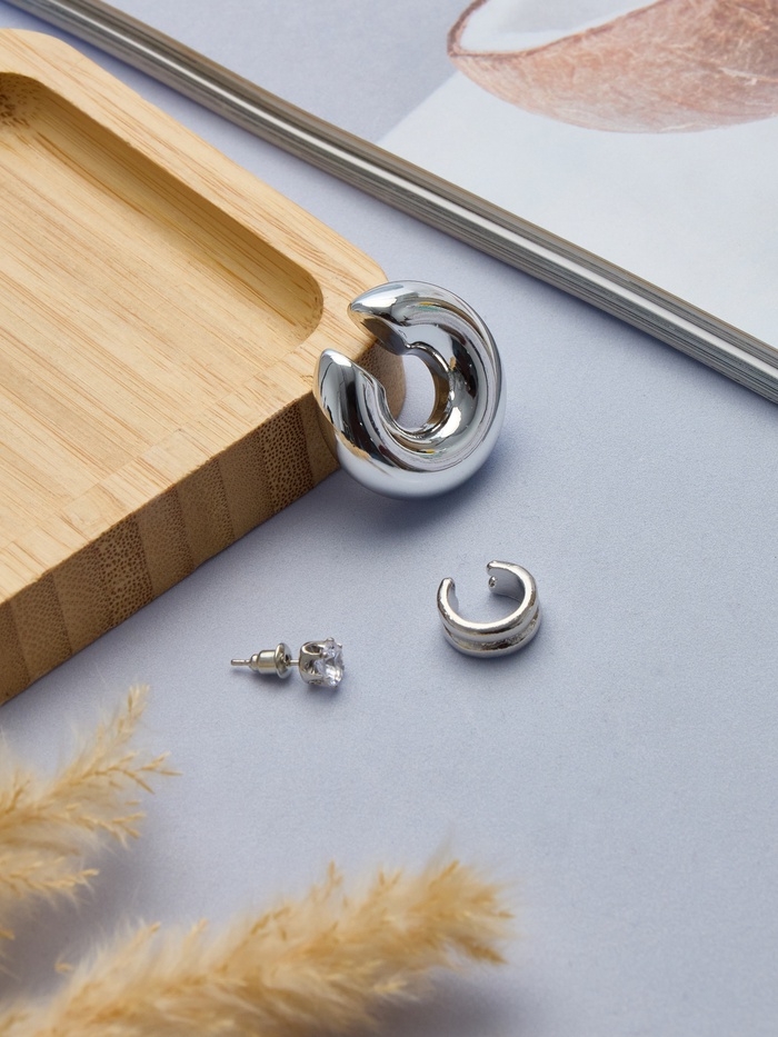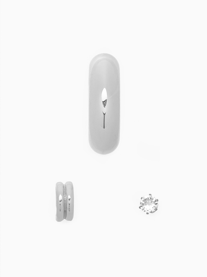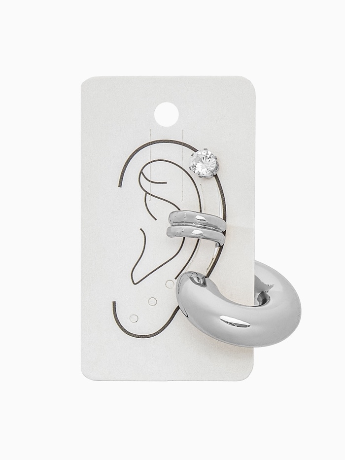 Набор серьги и каффы 3 шт., бублик и стразик, цвет серебро
