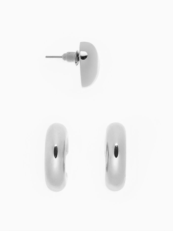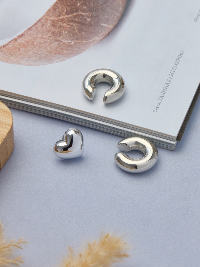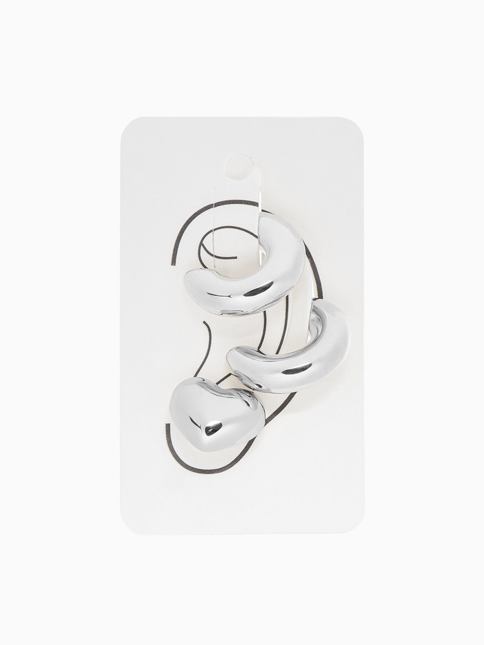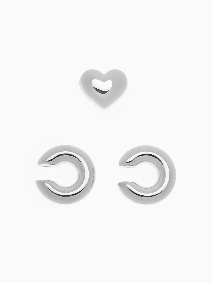 Набор серьги и каффы 3 шт. «Бублик» сердце, цвет серебро