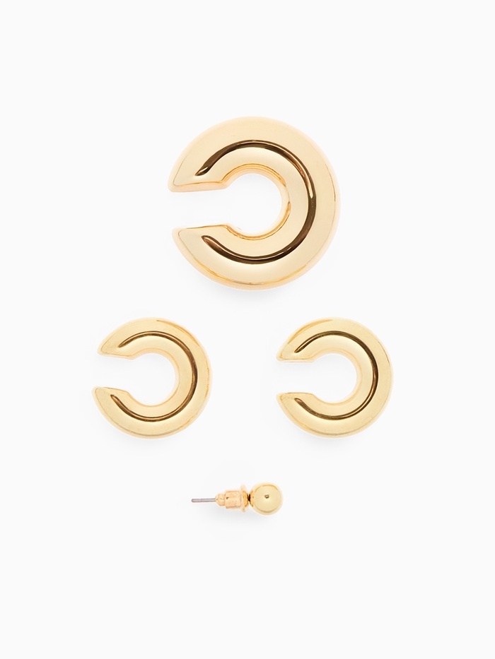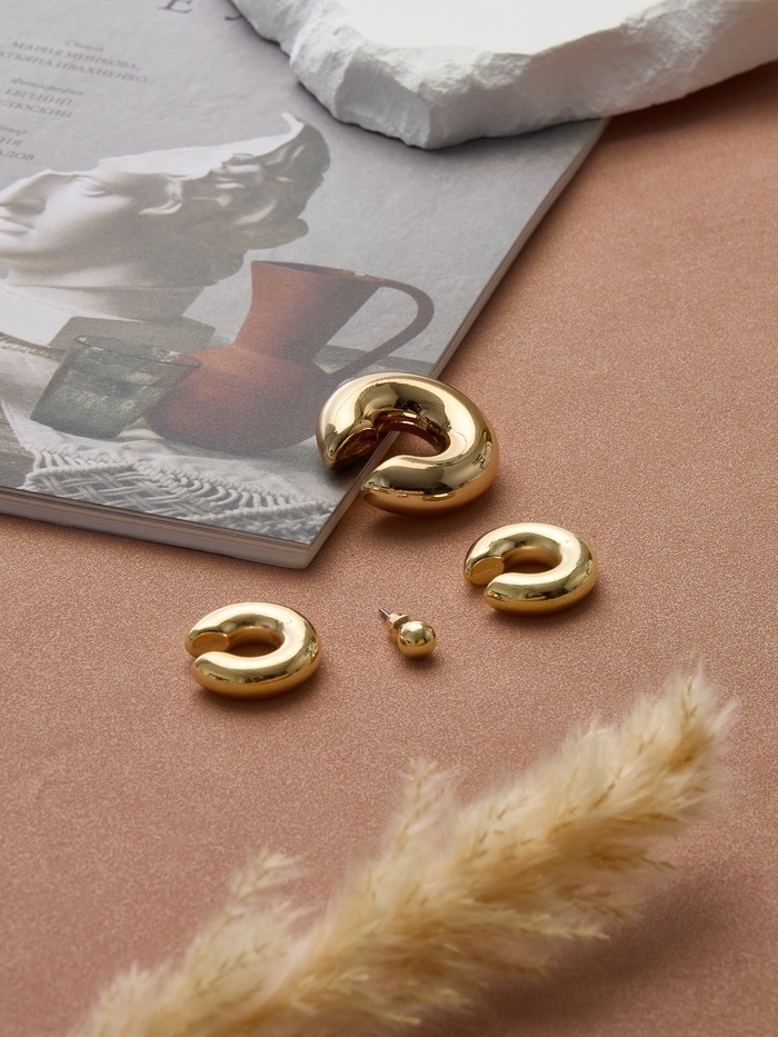 Набор серьги и каффы 4 шт. «Бублик» три дуги, цвет золото