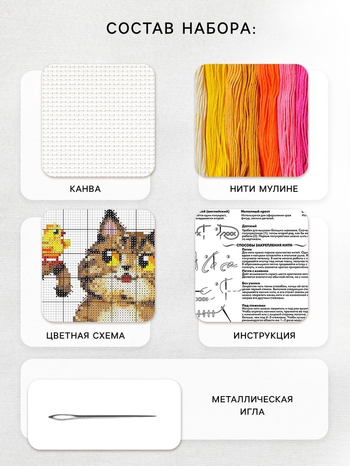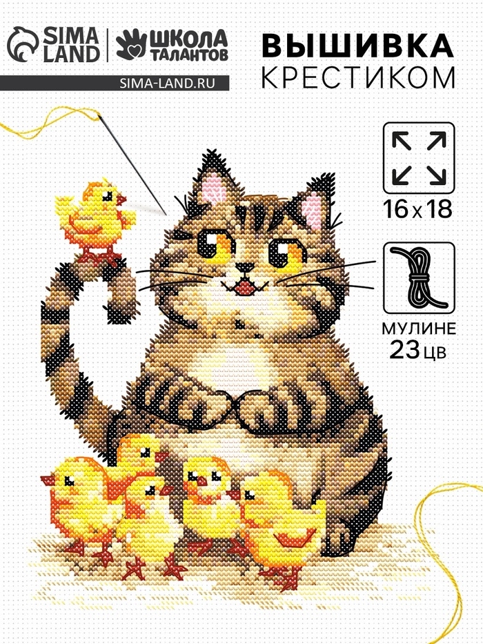 Вышивка крестиком «Пушистый котик и цыплята», набор для творчества, 16×18 см
