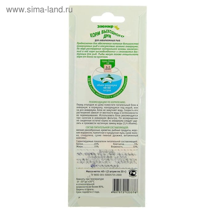 Корм для рыб ЗООМИР "корм выходного дня" 2 х 20 г