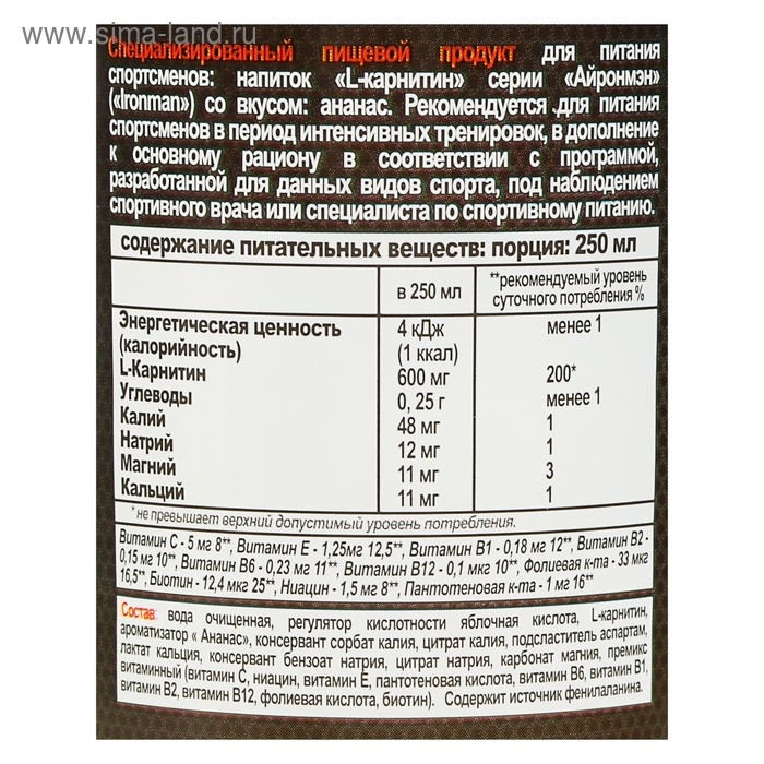 Напиток "Ironman" L-Карнитин ананас, спортивное питание, 0,5 л