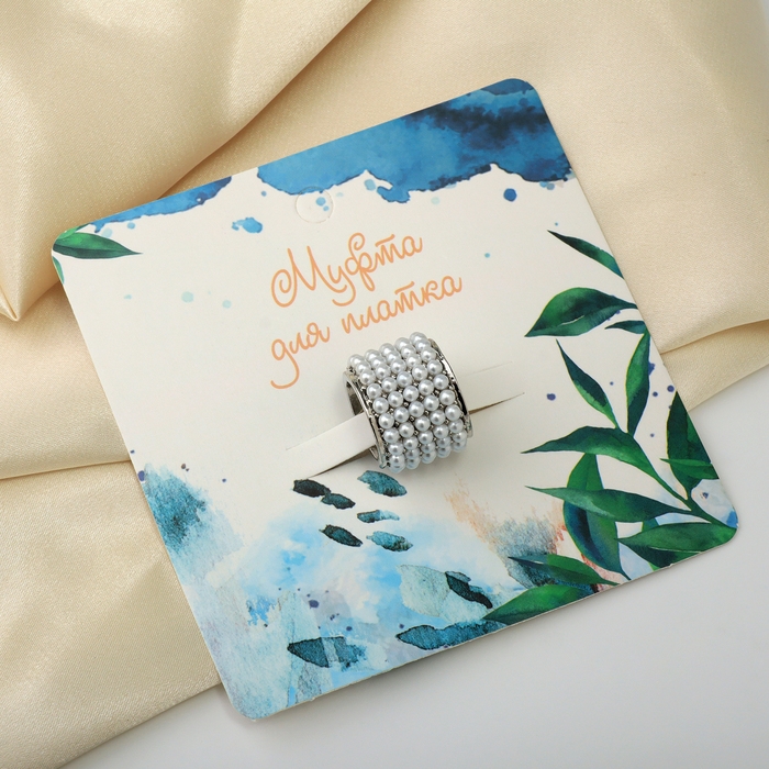 Муфта для платка «Жемчужинка», цвет белый в серебре