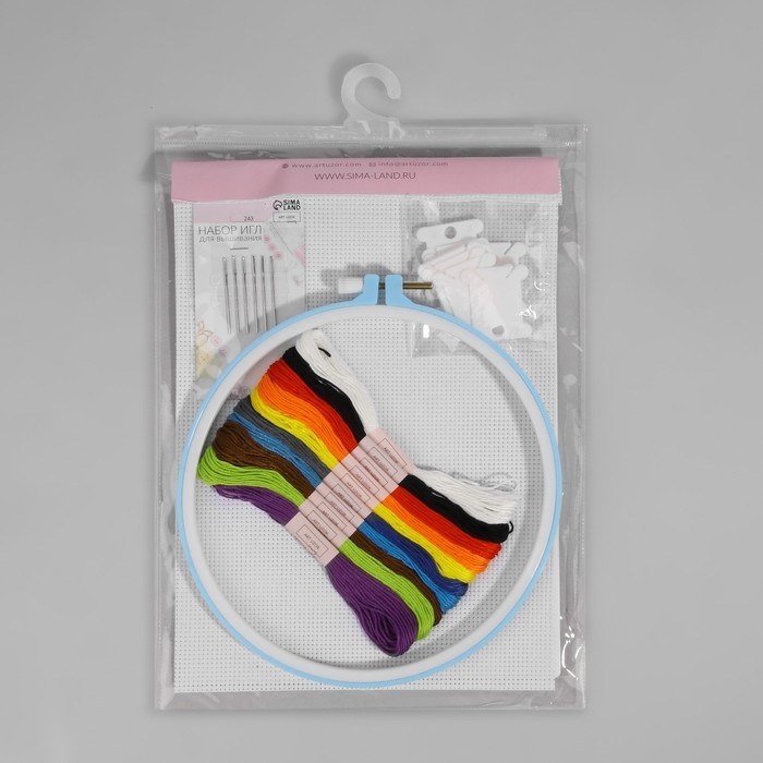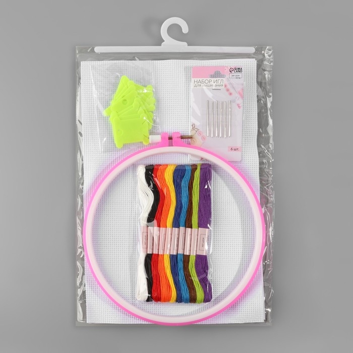 Набор для вышивания крестиком: канва без рисунка 30×20 см, нитки 10 шт, пяльцы d = 18 см, иглы 6 шт, шпульки 10 шт, цвет МИКС