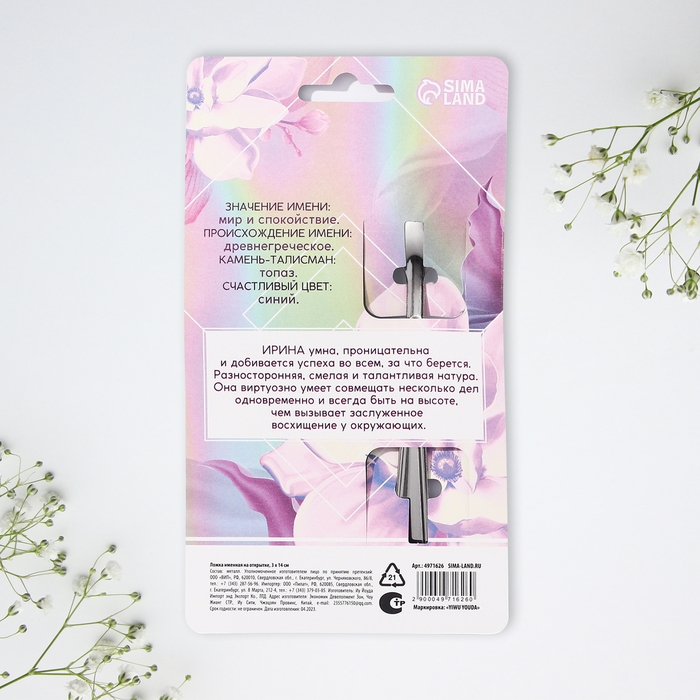 Ложка именная «Ирина», на открытке, 3 х 14 см.