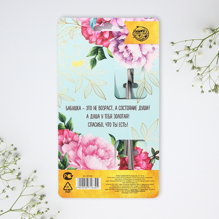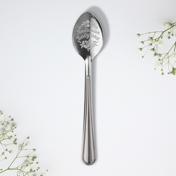 Ложка чайная с гравировкой «Любимая бабушка», на подарочной открытке, 3 х 14 см.