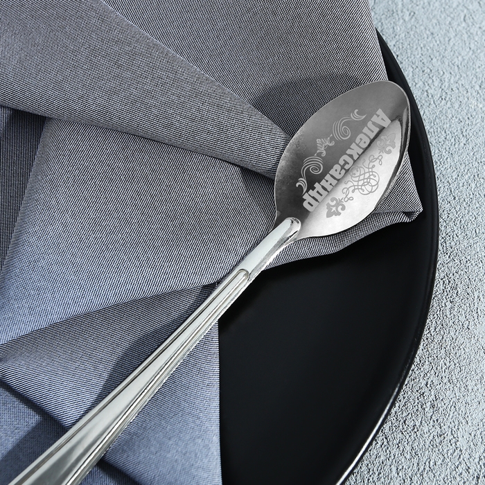 Ложка с лазерной гравировкой и изящной рукояткой преподносится на красочной открытке. На оборотной стороне изделия специально отведено место для подписи: кому и от кого был вручён подарок.