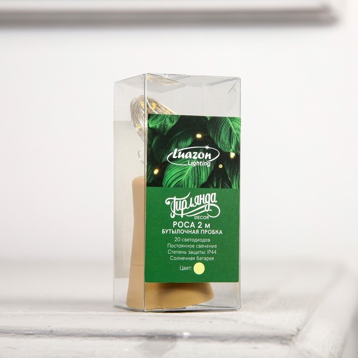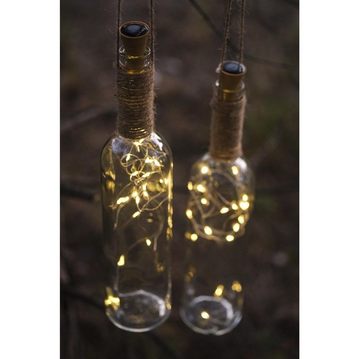 Гирлянда «Нить» 2 м роса с пробкой, IP44, серебристая нить, 20 LED, солнечная батарея, свечение тёплое белое