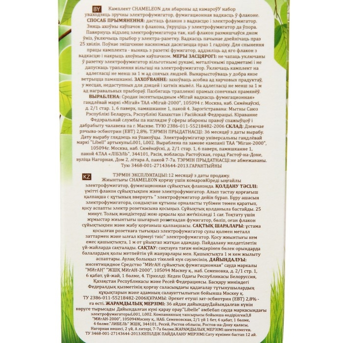 Одним из таких средств является комплект от комаров, который включает в себя фумигатор и флакон объемом 30 мл. Торговая марка, представляющая данный продукт, - ""Migan"".