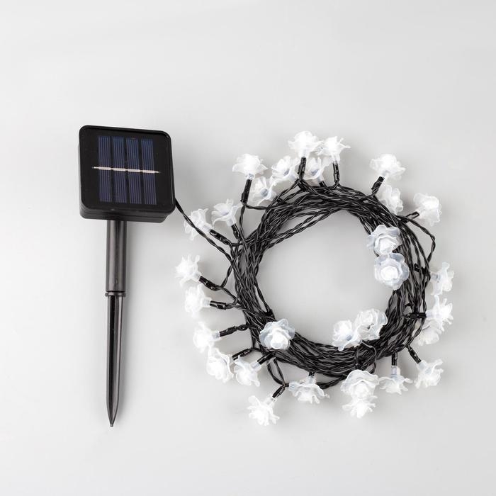 Гирлянда «Нить», 4.5 м, с насадками в виде роз, IP44, 30 LED, 2 режима, солнечная батарея, тёмная нить, свечение синее/фиолетовое/розовое