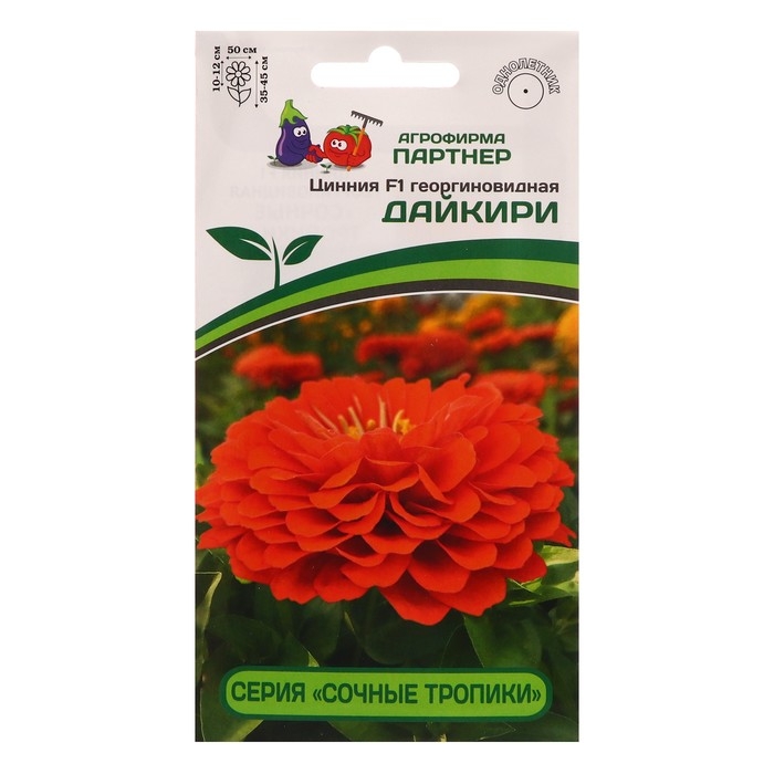 Имя этой мексиканской красотки созвучно с названием легендарного коктейля - «Дайкири». Коралловая окраска цветка выглядит «вкусно», «фруктово-сочно», но не ослепительно ярко, приобретая, по мере роспуска, более пастельный оттенок. Очень крупные, до 12 см в диаметре, цветки редко появляются по одному, чаще всего - это целый букет! Одновременно на растении может быть раскрыто более десятка цветков, которые долго держат форму и не выгорают на солнце. Генетически компактные кусты, до 50 см в диаметре, все как на подбор — выравненные, с хорошим ветвлением и устойчивыми цветоносами. Серия «Сочные тропики» отличается ранним, продолжительным цветением, неприхотливостью в уходе, а крепкое здоровье растений позволяет противостоять неблагоприятным погодным условиям и быть высокоустойчивыми к комплексу заболеваний, в том числе и к серой гнили (Botrytis). Это поистине удивительная серия для любого садового интерьера: ландшафтного, балконного или контейнерного декора в любимом патио-дворике. Чтобы цинния полностью раскрыла свой потенциал, рекомендуем объем кашпо 8-10 л на одно растение и схему посадки в грунте – 35х35 см.