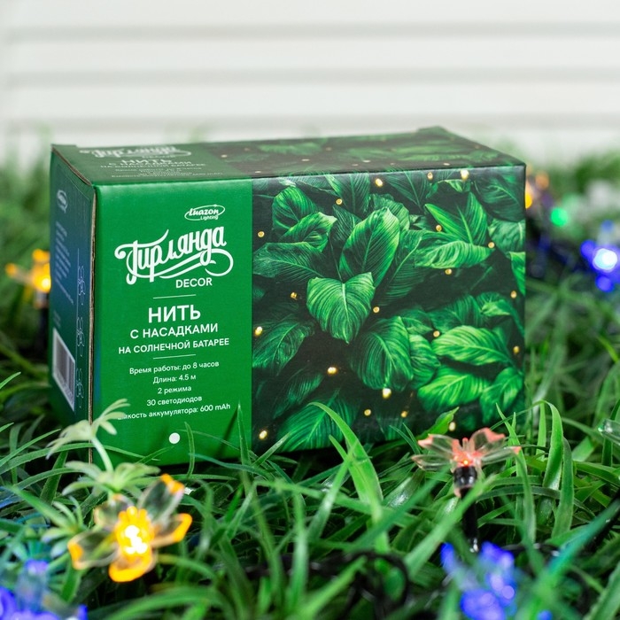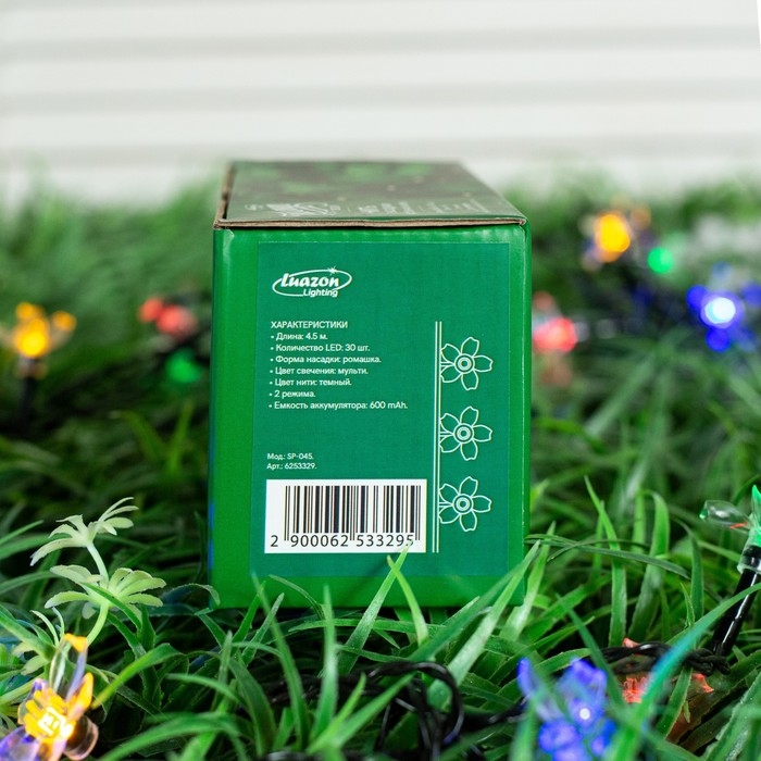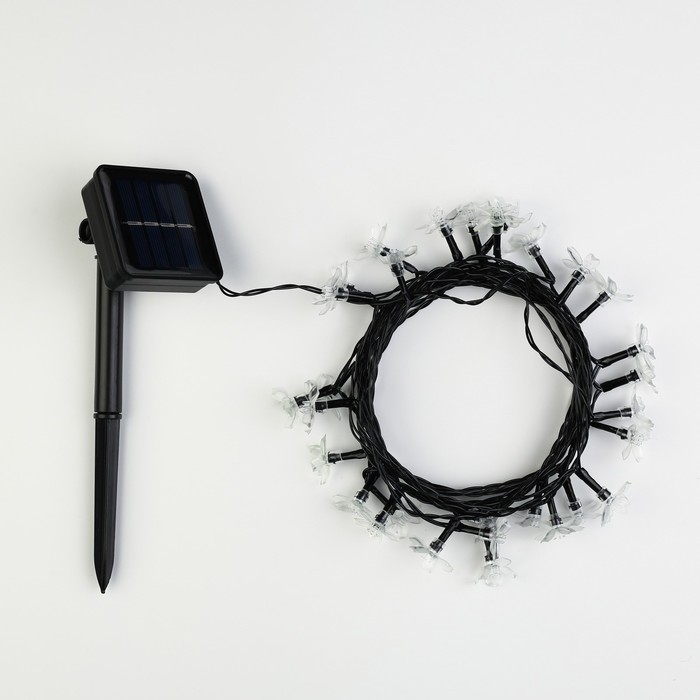 Гирлянда «Нить», 4.5 м, с насадками в виде ромашек, IP44, 30 LED, 2 режима, солнечная батарея, тёмная нить, свечение мульти
