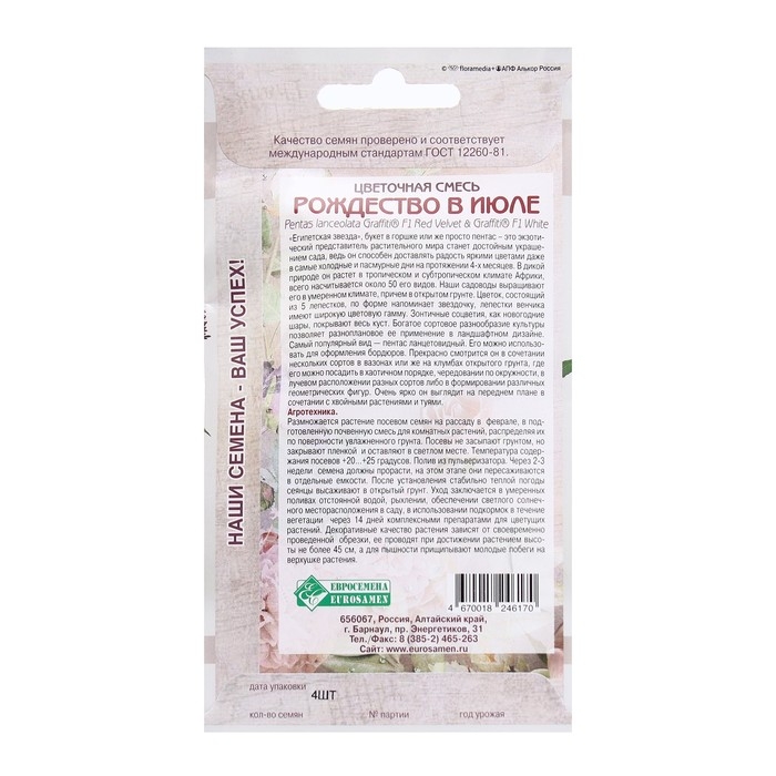 Семена Цветов Цветочная смесь Рождество в Июле, 4 драже