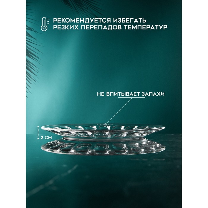 Тарелка стеклянная позволит правильно оформить стол к празднику, придаст изюминку любой сервировке стола. Тарелка прекрасно подойдет для вторых блюд, а также под закуски и десерты. Её можно использовать в микроволновке и мыть в посудомоечной машине. Изделия прекрасно впишутся в интерьер любой кухни и будут настоящим украшением вашего стола как в праздничное время, так и в повседневном использовании.