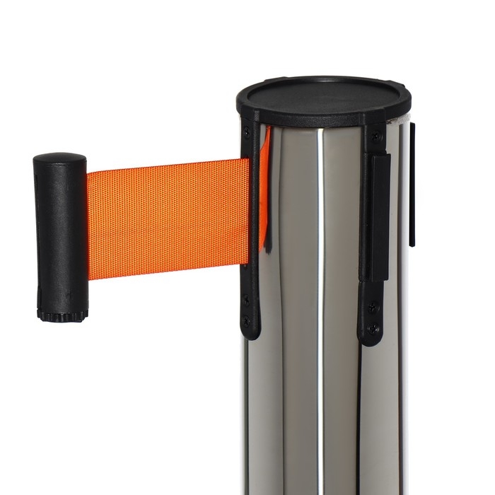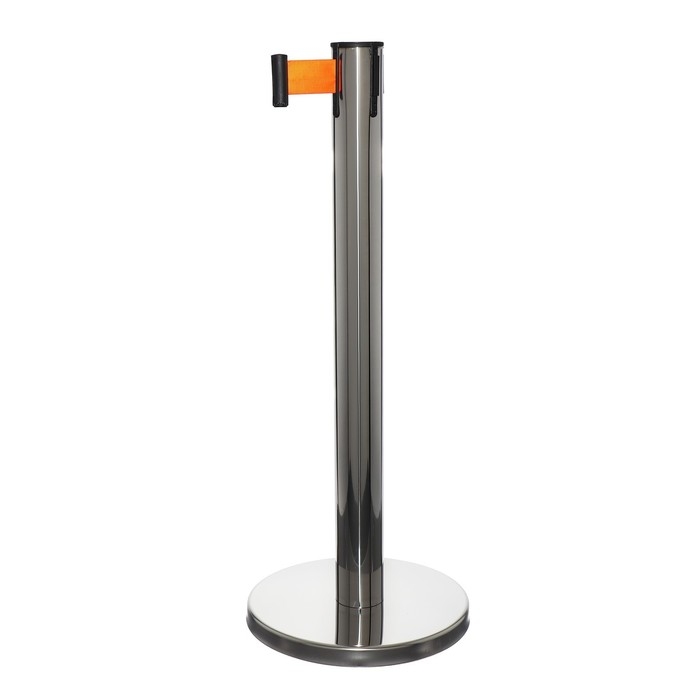Стойка ограждения серебряная, с вытяжной лентой-470 см оранжевая, высота-90см, d-11см, напольный d-35см