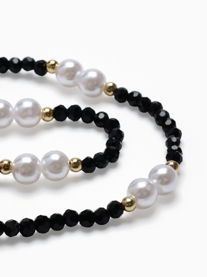 Бусы «Бисер» бусина №8, чёрно-белый в золоте, 40 см