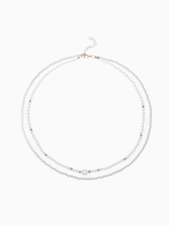 Бусы с жемчугом «Бусина» два ряда №4+6, цвет белый в золоте, 50 см