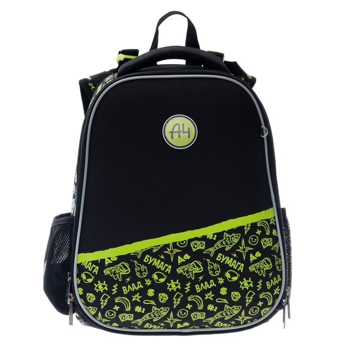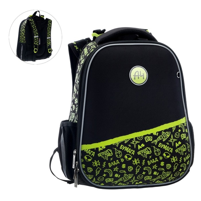 Рюкзак каркасный 37 х 29 х 17 см, Hatber Ergonomic Classic "Влад А4", чёрный/жёлтый NRk_71008
